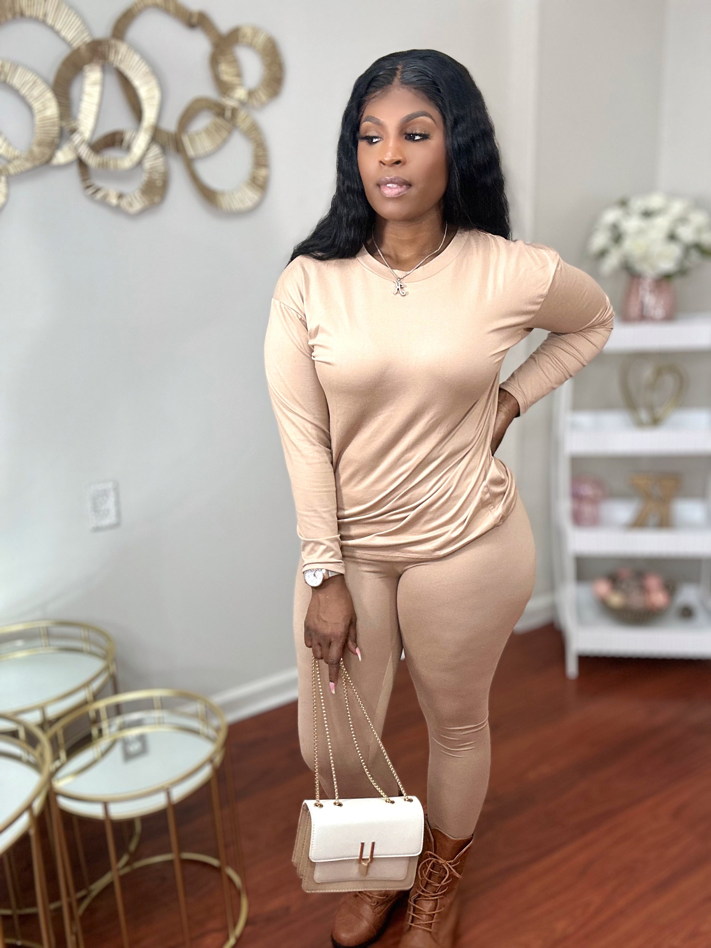 2 Piece Set Cotton Round Neck Long Sleeve Top & Leggings Set Have Great Stretch Do not recommend sizing up Model wearing a Small Set