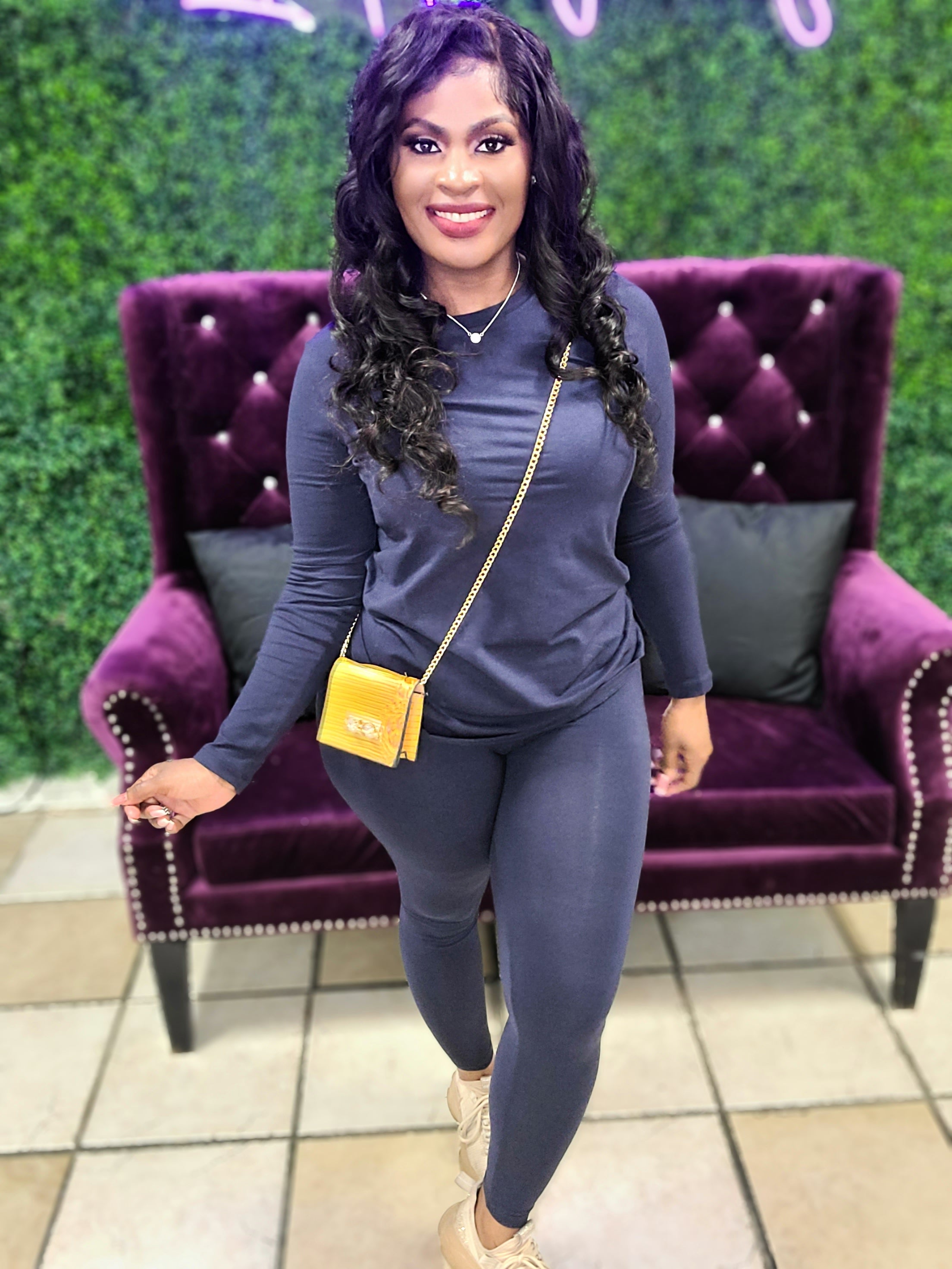 Cotton Round Neck Long Sleeve Top & Leggings Set