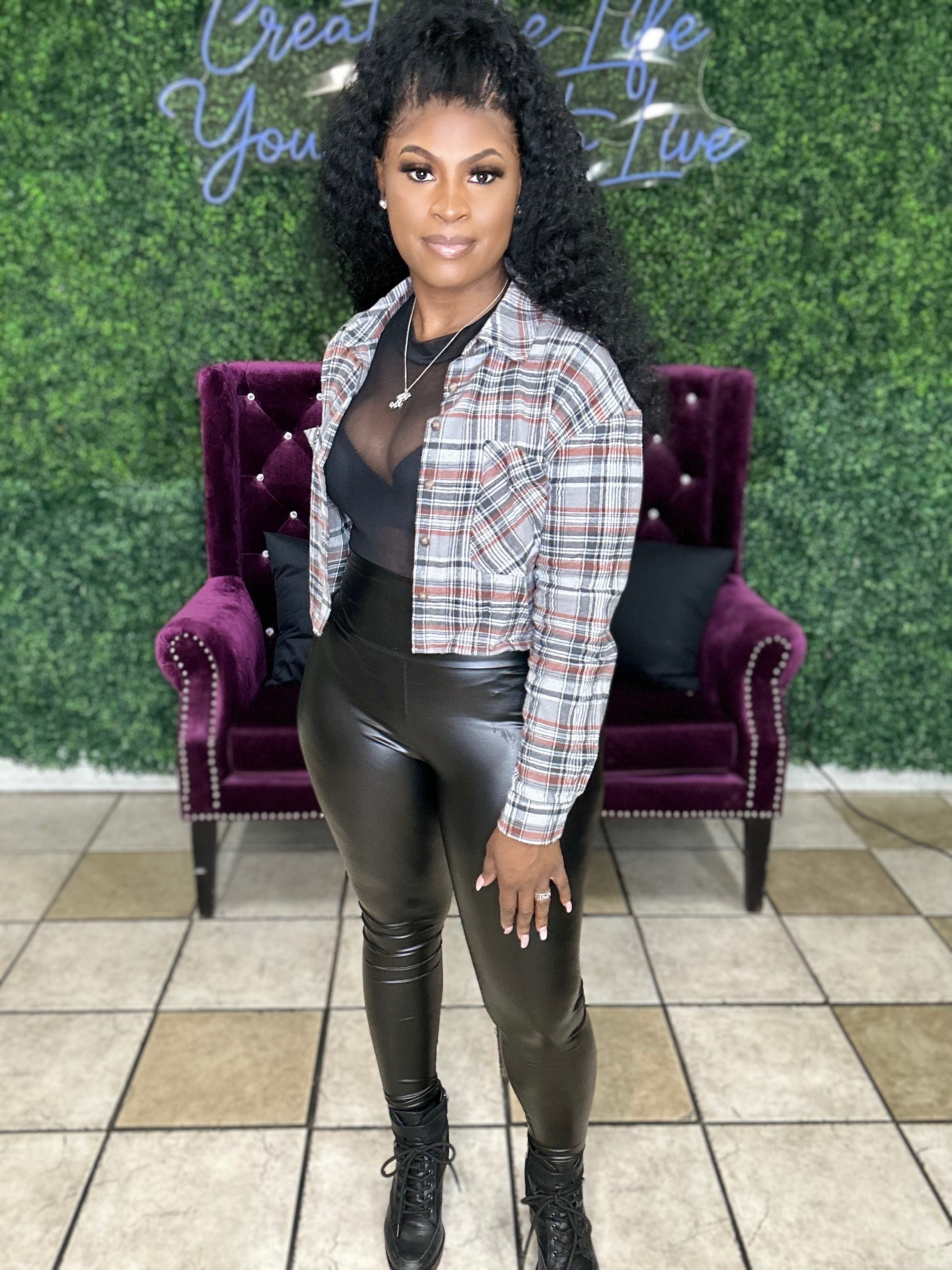 Long Sleeve Plaid Print Jacket (Thin Jacket Crop Top can also be worn as Crop Long Sleeve Shirt)