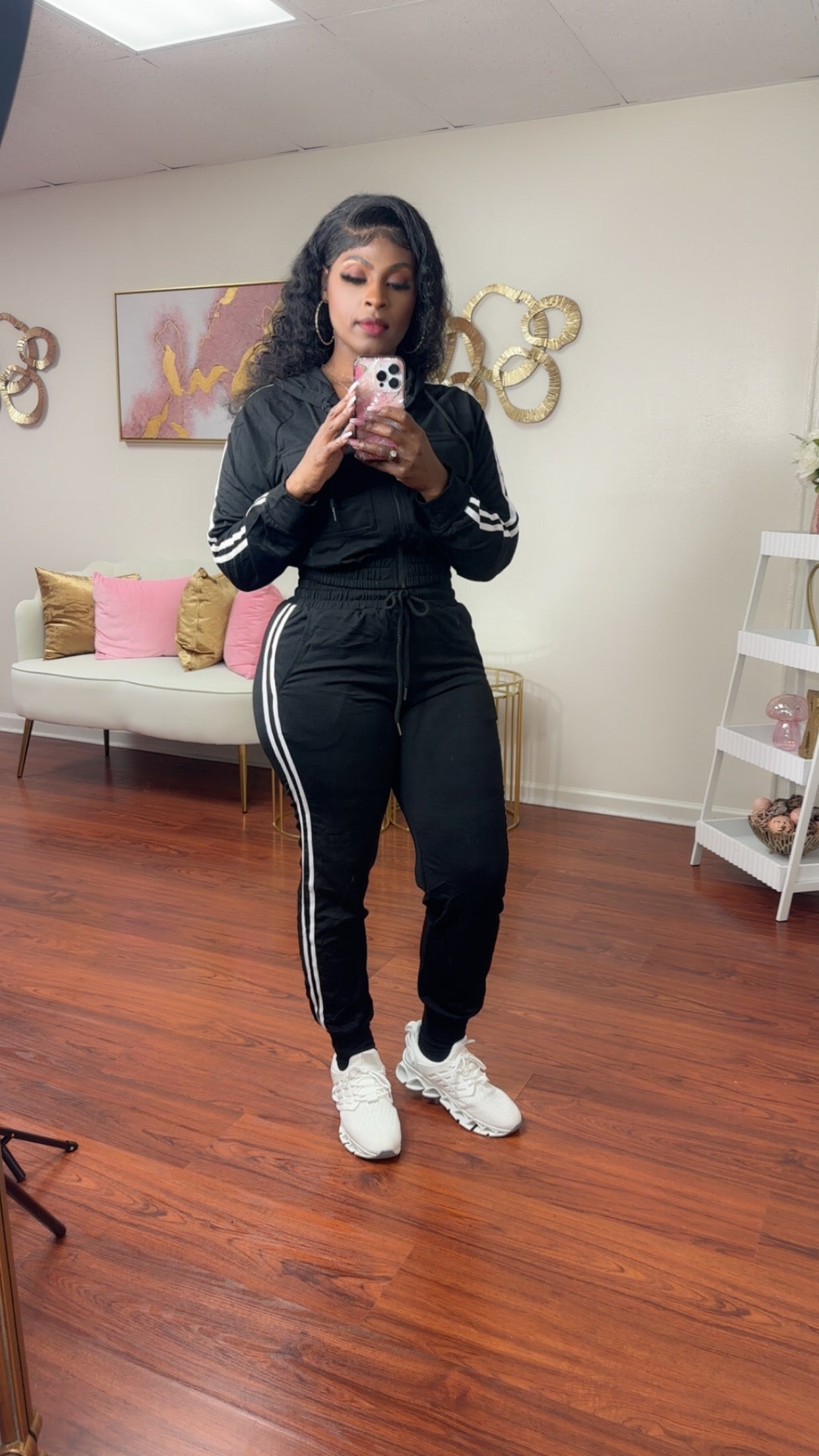 Chill out in style with this sleek, form-fitting set Crpped zip-up hoodie and matching joggers. Designed for comfort and a sporty look. Features: Cropped hoodie with a functional zip-up front. Joggers with an elasticated waist and ankle cuffs. Dual...